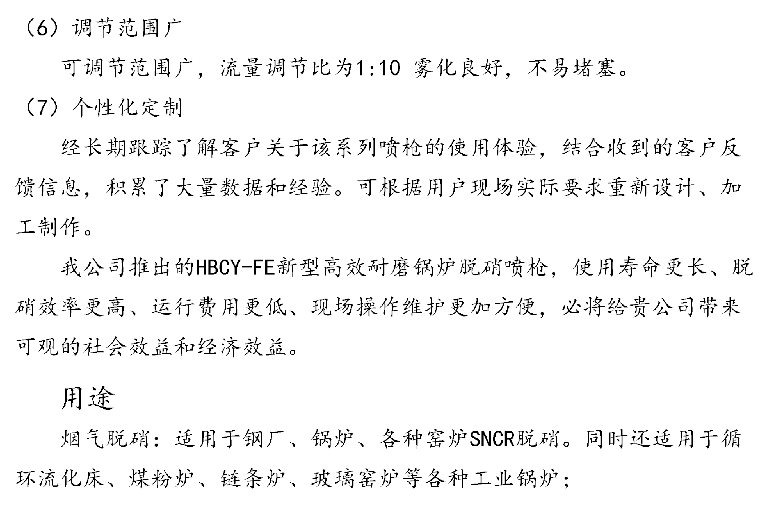 HBCY-FE脫硝噴槍參數(shù)介紹